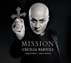 Para quienes somos fanáticos de Cecilia Bartoli (Roma, 1966), la portada de su nuevo album, Mission, ha sido motivo de una experiencia traumática (yo apenas me estoy reponiendo). Sobre todo cuando uno está acostumbrado a regocijarse no sólo con las dotes musicales de esta extraordinaria mezzosoprano, sino también con sus otras dotes: pizpiretos ojos oscuros, cuerpo generoso -como debe ser el de las cantantes italianas-, y abundante y salvaje cabellera.